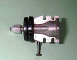The coil spring was contained in the rearmost (fixed) steel housing. Its outer end was hooked onto the lip of the housing, while the inner end was attached to a tubular steel sleeve which was mounted on a suitably machined portion of the front of the main bearing housing and was free to rotate. This steel sleeve in turn engaged with a "clutch" device contained in the front (rotating) housing. This clutch device was sealed within the front housing, hence we are unable to show any images of the internal mechanism. However, it worked in the same manner as in the earlier pull-cord starter developed by Wen-Mac, which was fully described in the "Latest Engine News" feature in the February 1959 issue of Model Aircraft.