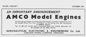 The initial announcement of the take-over appeared in an advertisement which was placed by the new owners in the October 1952 issue of Model Aircraft. This announcement included the information that production of the AMCO 3.5 BB would re-commence "shortly". An identically-worded announcement appeared in the November 1952 issue of the rival Aeromodeller magazine.