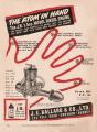 In mid 1954, Aeronautical Electronic & Engineering Co announced a new 1.5 cc AMCO engine called the Atom. Jack Ballard seems to have made a practise of issuing premature announcements, and this one was no exception—as of October 1954 we find him apologising for the delay in getting the Atom out to the model shops! This apology was repeated in December of 1954. It seems highly likely that Allen's earlier departure had something to do with this. A few examples of the AMCO Atom were made before AMCO production ceased in March of 1955, since one or two are known to exist today in private collections. Still, this remains one of the rarest AMCO models.