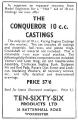 I also wish to pay tribute to my friend and colleague Alan Strutt of Somerset, England, from whom I acquired the pristine example of the Conqueror which appears in this article and who was kind enough to provide me with some of the available background information regarding this rare and hitherto rather obscure motor. Finally, I'm most grateful for the invaluable assistance of my friend Kevin Richards, who responded to a number of requests for information during the preparation of this article. Thanks, mates!