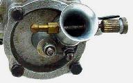 The intake venturi on this example is a screw-in item along McCoy lines and appears to be secured on a tapered pipe thread, perhaps with some kind of thread-locker for good measure—I couldn't shift it by fair means and therefore decided to leave well alone. Interestingly, the plans specify a normal 7/16 BSF thread with a knurled brass locking ring, so once again this is a builder modification. The venturi on this example has an internal diameter of 0.325"—a bit on the conservative side for a 10cc racing engine, especially when compared with the 0.417" diameter of the McCoy 60 Series 20 component, although it more or less matches the throat diameter of the Hornet 60. The intention was presumably to create sufficient suction to allow for the operation of the engine without the need for pressure fuel feed.