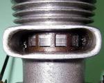 The slight angle at which the plug is set is only one of the oddities connected with the installation of this essential component in the particular example of the engine under discussion. The plug hole is threaded 1/4-32 in the usual way, and the thread length is suitable for a long reach plug. So far, so good, but now it gets a bit weird! The seat for the plug where the copper sealing gasket rests is deeply recessed into a spigot cast into the top of the head, and this recess has a diameter of only 0.340" This is insufficient to accommodate the body of the long reach Champion VR2 spark plug or equivalent that one would normally expect to find in use on this engine. The integrally-cast spigot has an outside diameter of only 0.435 in, so it appears that a recess diameter of this order was actually envisioned by the designer—there's insufficient meat for much more. A Champion V3 plug fits fine but is a little short in term of reach, while the rather rare British-made Lodge plug with which this example is equipped is also a good fit but is even shorter in terms of its reach. Still, plugs of this size must have been the intended items. Unless the correct plug is fitted, compression seal will doubtless feel a little suspect.