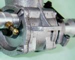 The specified compression ratio of the spark ignition Conqueror is unusually high for the period, being cited as 13:1, although a volumetric measurement of my own example gives a figure of 12:1—still pretty high, and the engine certainly feels like it when flipped over! It's clear from this figure that the Conqueror was intended to operate on a pretty high-octane fuel. Indeed, reference to the manufacturer's instructions confirms that the engine was intended for operation on methanol-based fuels, even in spark ignition form. The rival Rowell 60, which was also intended primarily for car racing, and the American-made Orr-Tornado 65 were the only other contemporary racing engines to approach this figure, sporting compression ratios of 12:1 and 12.5:1 respectively. The Rowell was specifically intended for methanol operation, while the Orr-Tornado was designed for operation on either methanol or a methanol-benzol mixture.