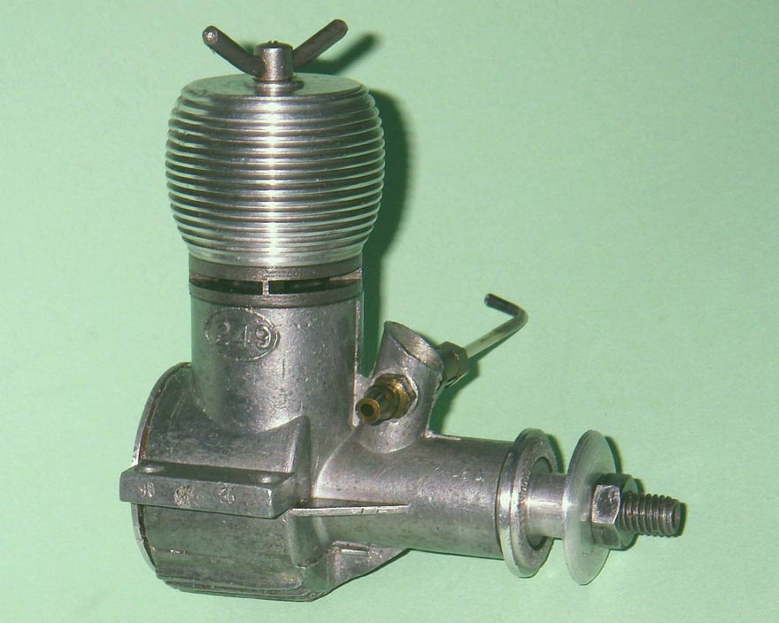 The plain bearing beam mount Elfin 1.49 cc diesel was a huge success and was the most popular Elfin model of them all. It remained in production for some 7 years, achieving an enviable record of stellar competition successes along the way. These triumphs included first place in the 1952 World Free Flight Championship as well as a very creditable fourth place in the same event in 1954. The main Achilles Heel of the 1.49 was a decided variability in quality, doubtless arising from the enforced ongoing use of well-worn production equipment. A good one was really good, but not all of them came up to that standard ...