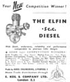 The Elfin 50 was the smallest-ever member of the Elfin family of model diesels produced by Aerol Engineering of Henry Street, Liverpool 13. The history of this company has been recorded in our companion articles covering the later Elfin ball-race models and company founder Frank Ellis. For convenience, we will summarize the main points here, but for more detail about the company's early years, visit the Elfin Ball-Race page.