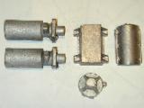 The engine at the head of the page was built by founder Motor Boy, Don McCluskey, from his own patterns and castings. This engine is now under the care of Don's life long friend, Bert Striegler. The photo here shows the last remaining set of Don's castings with one cylinder partially machined by Don himself. They sit under my bench awaiting the right moment to become a foreground job. I'd be tempted to make the shaft along the lines of the Prototype Taplin Twin shaft. This arrangement provides a degree of latitude in alignment and obviates the need for big-end straps, while still permitting easy disassembly (see the GA drawing above).
