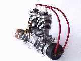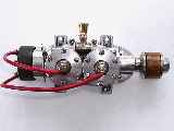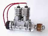 The engine is a quite conventional side port design with a bore of 5/8" and a stroke of 17/32". In common with automotive practice, the Twin used a "full" crankshaft supported at both ends and the middle by plain aluminium journals. The crankcase was split horizontally with the lower half attaching to the upper with six 4-40 screws. The steel crank shaft was fabricated from a number of parts, cross-pinned together.
