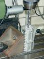 Work on the crankcase began in about 1996 using co-ordinate drilling and boring on the mill to position all the holes—DRO's are wonderful (see Photo #1). Progress however, swiftly stalled when I turned the back cover to a loose fit in the case—very precise fits being required to align the captive bearings in the front and rear covers for the crank and cam shafts. As related in the page describing How to use the Putting-On Tool, this problem would have been easy to fix before the part was removed from the 4 jaw chuck; but less so after. So the Cirrus went Under The Bench until 2005 when the "putting-on tool" was used to fix the little problem, allowing work to re-commence.