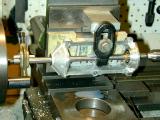 Photo #2 shows the jig used to drill the front and rear cover attach holes, and the camshaft bearing holes. The use of this jig to achieve perfect alignment for the camshaft was described by Eric Whittle in his construction article for the Cirrus in SIC. I'm happy to say it worked exactly as advertised—somewhat to my surprise. The two pot chucks next to the jig were used to hold the large, brass timing gear for facing, contouring, and key-way cutting.