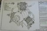 The plans comprise 28 CAD drawing sheets, and 36 pages of instructions. They are printed on 19" x 11" sheets and arrive spiral bound and numbered (I have set #13). The drawings are clear with imperial dimensions and lots of white space. Many include an isometric rendering of the part, and even more important, they present full details of jigs, fixtures and tooling required to build the engine, including tooling to make the tooling! A parts list thoughtfully provides the material and blank size required for all parts, with a suggested supplier and their catalog item number where appropriate.