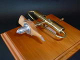 Considerably cheaper to build is the Pachasa air engine. The example here was built by Hayden Purdy (New Zealand) from the plans on this site, adapted in the best model engineering traditions to whatever he could find in the scrap box. This resulted in some rather thick walled cylinders, but as the engine is never likely to fly, this does not matter at all. He also substituted teflon for the phenolic rod originally called out for making the pistons; quite a sensible choice. The main thing is that it runs and is a credit to it's young builder, an upcoming engineer if ever there was one. You can click here for Hayden's video of the engine in action from front and back.