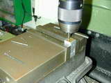 - The block is center drilled, then blind drilled about 1/32" short of final depth in stages: 1/4, 3/8, and 19/32". I then used a 1/2" slot-drill (2 flute cutter) to flat-bottom the hole, but the boring tool could do the job just as well. The hole is now opened out to 5/8" diameter and 9/16" depth. Be careful to get as good a finish as possible on the inner face of the hole as this is the rotor seat. The 3/32" hole for the rotor pivot is then drilled. Drill undersize--say 5/64"--first to get the hole close to size.