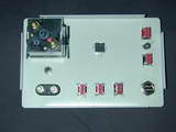 The rear panel carries the on-off power switch and fuse holder. Below them is the AC socket and RFI filter liberated from the dead computer power supply unit (PSU). The cooling fan is placed to suck air into the cabinet and blow direct over the resistor which will be positioned over one of the sets of cabinet vent holes. The arty grid over the fan in the outside view photograph was also liberated from the dead PSU case and sandwiched between fan and fly-cut rear panel opening.