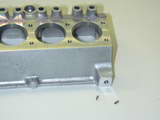 Here is the result of about one minute of EDM'ing with the brass tube and only the "fine cut" capacitor engaged. We see I was not precisely centered and the electrode is too small to reach the flutes in the 4-40 tap, although we are close. Note how the tube has made negative donut cut. Not so obvious is the erosion rate of the brass tube. This was about 4:1 more than the cut depth. In fact, the misalignment resulted in a sliver of un-eroded brass that passed down one tap flute neatly cutting a key-way through the aluminium threads about 0.01" wide. Neat, but bad for the real job still to be done.
