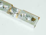 For grins, a piece of square brass tube was used on the test item to make a blind, square hole. Measurement shows the hole to be 0.016" larger than the uneroded electrode, equating to the 0.008" kerf that seems to be standard for most EDM's. Close examination of the electrode surface shows the side facing the stream coming from the hose nozzle is clean, while the other three sides are very pitted. This indicates to me that it is desirable to either flush from two directions, or better, through the electrode—just like the book says. Hmmmm...