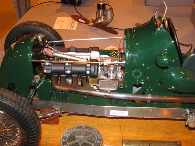 The photos on this page were taken at the annual Bristol Model Engineering Exhibition. As usual, they show just a small part of the exhibits, focusing on model internal combustion engines. In sequence left to right, top to bottom are a 1066 Falcon, a 1/4 scale Austin 7 by Mr AJ Bodiley, an ETW Dolphin, a 1/4 scale Gnome rotary in a 1/4 scale Sopwith Pup (builder sadly unknown), and a 1/4 scale Bentley OHV four by Mr Mike Sayers.