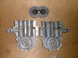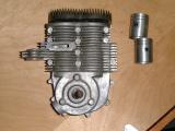 This is a more serious version of our previous Whatzit, or at least a nice set of die castings for one meaning someone went to a lot of trouble and probably did some prototype work we don't know about. Like the engine Ken examined (which he never did get to run before its owner sold it to a serious collector for a King's ransom), it features two heavily desaxé'd pistons. But unlike the other, it follows a more established design for this type of engine. The basic concept is two pistons sharing a common combustion chamber, with one "leading" the other and ported such that the leading piston is responsible for exhaust, while the trailing one handles transfer. The engine is called a "split single", or Twingle and was developed for use in Punch (Austria) motorcycles designed by Giovanni Marcellino in the 1920's. Sears even marketed twingle powered Punchs in the US during the 1960's.