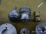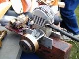 The flat 4 is an unfinished engine, quite old [although it had glow plugs] and the inside picture shows scotch yokes and no swinging conrods. There was no provision for an induction system of any kind, and we could not see where it could go. It was most likely to be a single rear disc with the front getting its charge through the hollow shaft. Lots of work had gone into an engine that stood little chance of ever running.