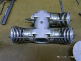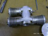 A major draw back of the design was the mass of the pistons and conrods when compared to a conventional single.