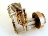 I like the way the designer incorporated the venturi; sort of like the way Cox did on their TeeDee and Medallion series, except this seems a press fixture rather than being retained by a screw on sleeve at the front. The idea of the "fuel tank in the fake twin" was published in an early Aeromodeller issue (this engine might have inspired that drawing) and adds were placed for a commercial engine called "The Lionheart" that incorporated the same idea. This was advertised in 1949/50 as either diesel or glow with a capacity of 2.49cc.