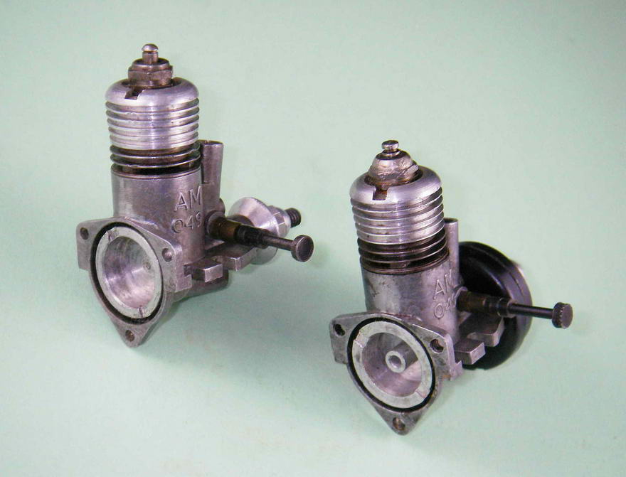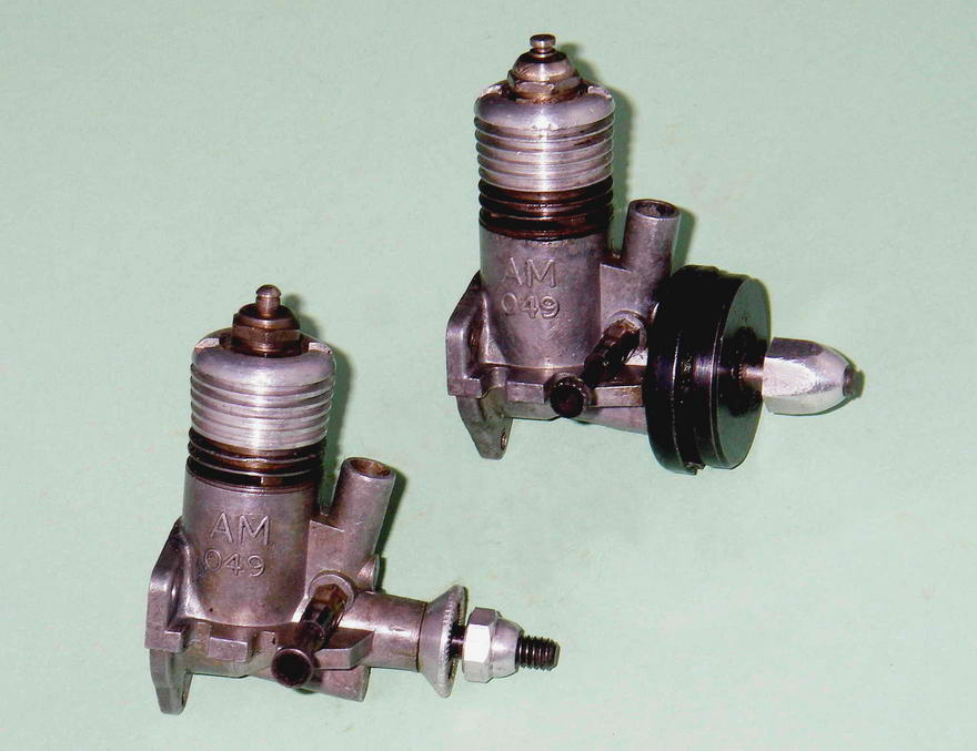 One piece of direct evidence supporting this notion is the previously-mentioned fact that some examples of the A-M .049 have backplates which are centrally tapped to accommodate a back tank, even though such tanks were never fitted as supplied. This is easily explained if the backplates were simply taken from Wen-Mac stock, since Wen-Mac did produce a number of variants of the Wen-Mac .049 which were fitted with tanks. Conversely, there was no reason at all for Allen Engineering to manufacture such backplates since they never offered tanks for these engines at any time.