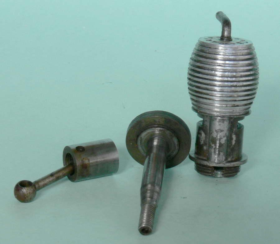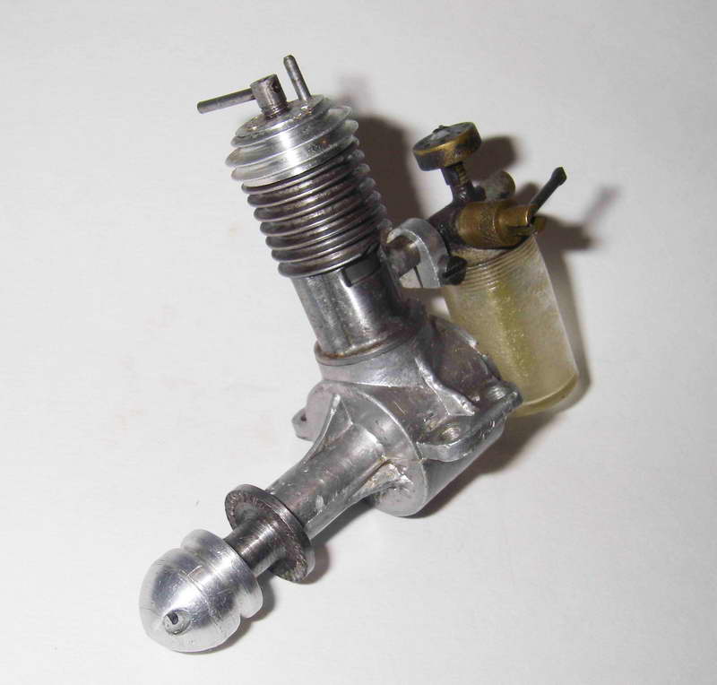 I’ve run the example illustrated, and can confirm that it starts and runs very well indeed. It has been used but remains in near-perfect mechanical condition. An 8x4 prop seems to suit it just fine, and it turns an 8x4 Taipan glass-fibre nylon prop at a steady 6,300 rpm on the bench. The 9x4 recommended by the makers would have over-propped it unless a very "fast" prop was used. I can also confirm Sparey’s comment about the fuel tank head issue—to run the tank out at the same setting, you have to set the engine so that it runs at minimum lean near the end of the run, which means that the first part of the run is inevitably slightly rich. But this would be of little practical consequence in the kind of situation (small sport free-flight models) in which this engine would have generally been used. Furthermore, the tank simply screws into the metal tank top, and is thus easily removed if desired to allow the use of a separate tank. I’m very fortunate that my example still has its original tank!