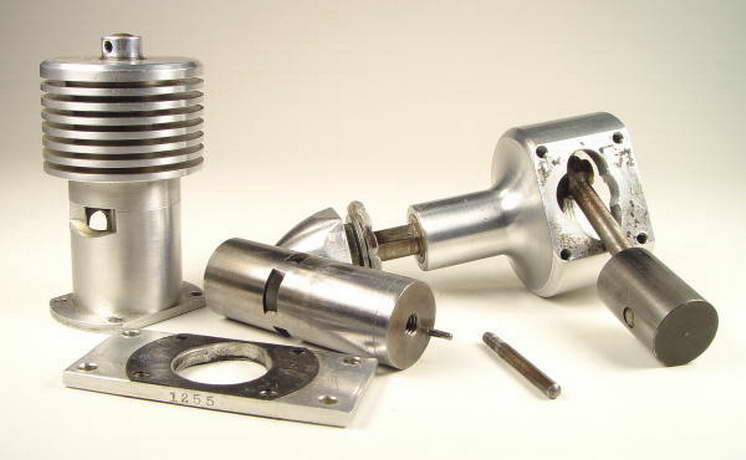 - Cylinder bore and stroke—0.656 in. x 0.875 in. (16.66 mm x 22.22 mm) (confirmed by direct measurement, and identical to the contemporary Drone fixed comp diesel! Coincidence, or influence?)