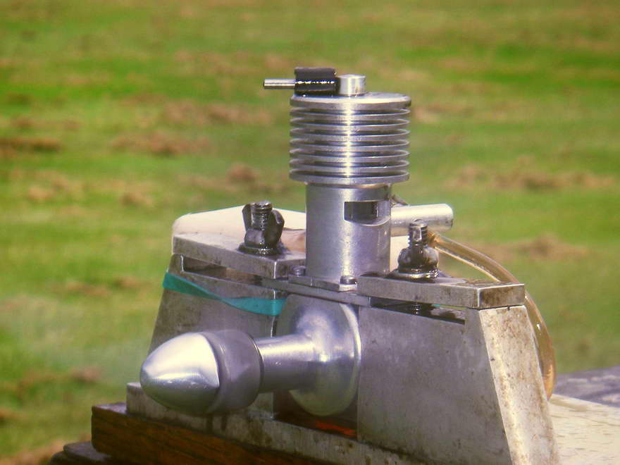 My own engine number 1427 is little used and even still has both its guarantee certificate and spare parts list as well as the neat little separate plastic fuel tank with which these motors were originally supplied. I've actually never seen a mounted metal tank like the one on Bert Striegler's example, and in fact all but two examples of the engine which I have encountered over the years have had their needle valve assemblies set horizontally when correctly tightened—the two exceptions being Bert's example and the tankless example illustrated by Fisher. It is of course a simple matter to adjust the venturi thread to give a vertical needle valve alignment as required for the use of a back-tank like Bert's.
