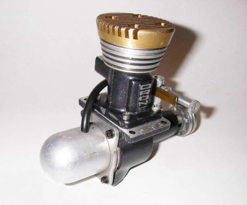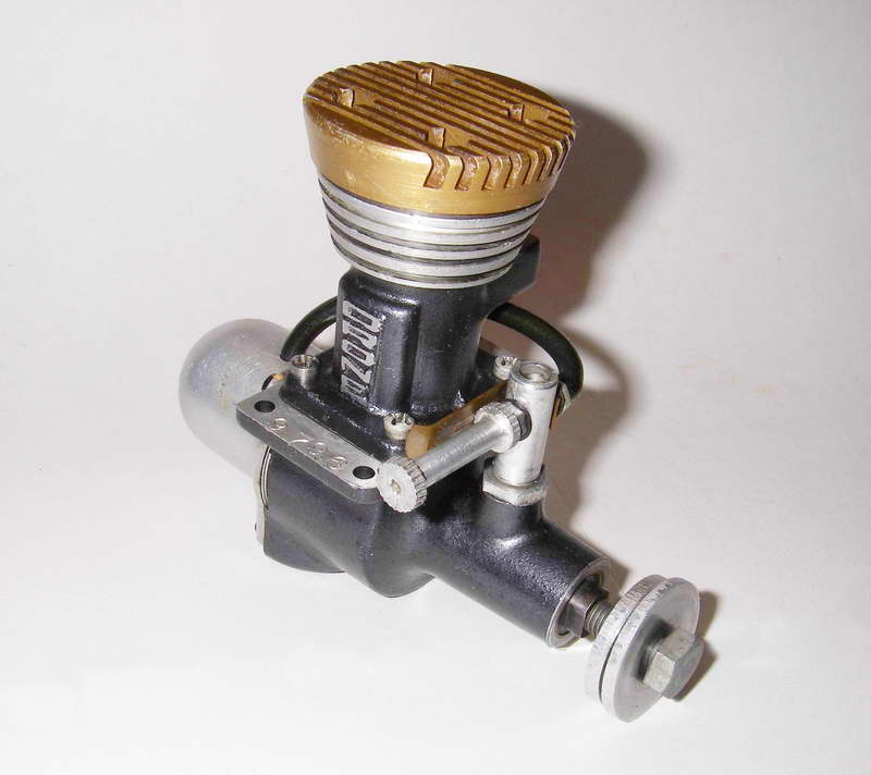 At 275 gm (9.7 oz.) complete with tank, the Drone was certainly no lightweight. However, it dispensed with the cumbersome and heavy spark ignition equipment and seriously out-torqued the spark ignition opposition which was all that it had to contend with during the pre-glowplug era in which it was introduced. In terms of its effective power-to-weight ratio, it probably at least equalled the best of the opposition and certainly had far less to go wrong.