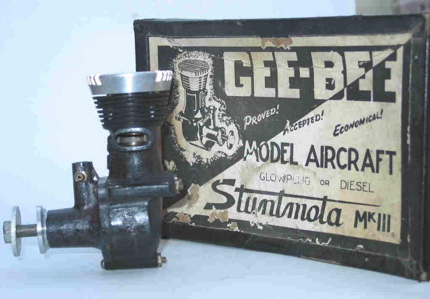 The Drone story didn't quite end at this point. In 1949, the late and much-missed Australian manufacturer Gordon Burford produced a fixed-compression diesel known as the GB Stunta-Mota. This engine was basically a direct copy of the second-model Drone with a few minor changes. It looked just like a Drone except for its plain aluminum head, a more rounded exhaust stack, a stiffening web cast behind the venturi, and the letters "GB" instead of "Drone" on the front of the cylinder. Far fewer of these were made than the original Drone, and the Stunta-Mota is a highly prized collector's item today.