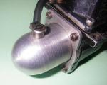 The main bearing was now mounted on a separate cover plate which bolted onto the front of the crankcase with three long bolts and nuts. A gasket was used to ensure a seal. This arrangement allowed for the possibility of mounting the engine radially if desired. The venturi intake was cast integrally with the main bearing rather than being a separate screw-in item as on the first model.