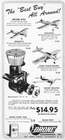 "We have been flying with the Drone for several months now and find its .297 displacement gives adequate power to handle ships which would be considered as excessively heavy for an equal displacement gasoline engine. We have had particular fun with Drone-powered P-39 scale models. The Drone can take these plastic prefabricated ships along at a lively 60 mph and has adequate power for stunts and emergencies. Leon Shulman's peppy little diesel runs equally well with a 10x12 or an 11x10 prop."