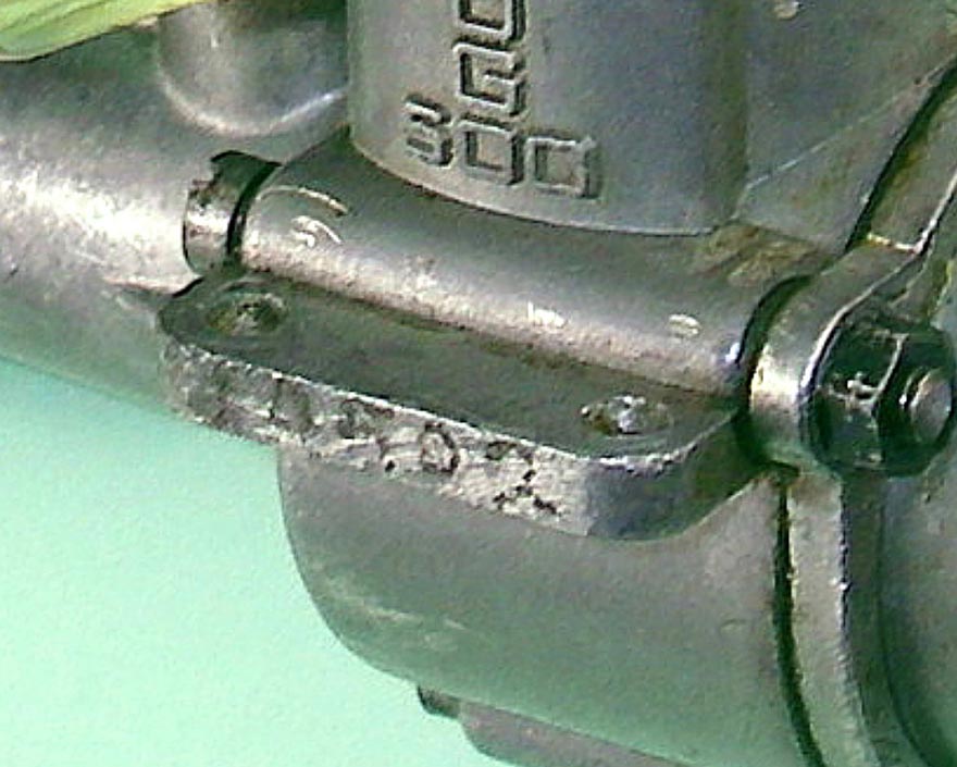 Even if a failure did not occur as a result of a crash impact, the very small amount of metal available in the main bearing housing to resist the significant cyclic bending forces imposed on the bearing during operation would appear to give rise to a greatly increased potential for metal fatigue to develop in the material of the crankcase at this point. It seems likely that crankcase failures arising from this weakness were not unknown. The presence in our serial number "collection" of a proportion of thick-lug FROG 500's with no serial numbers likely reflects the replacement of the original cases due to crash damage or operational fatigue failure.