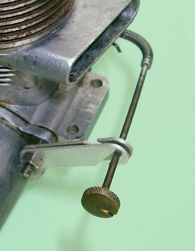 The backplates of both designs were pressure die-castings which were retained by three nut-and-bolt combinations running axially from the front through the full length of the crankcase casting. Finally, both models featured needle valves having flexible spring-mounted extensions which could be held in a rearward alignment for safe manipulation by a slotted retainer clip attached to the rear of the engine using one of the backplate retaining nuts. The K&B design was changed in early 1950 to a solid thimble, but the FROG retained its flexible needle throughout.