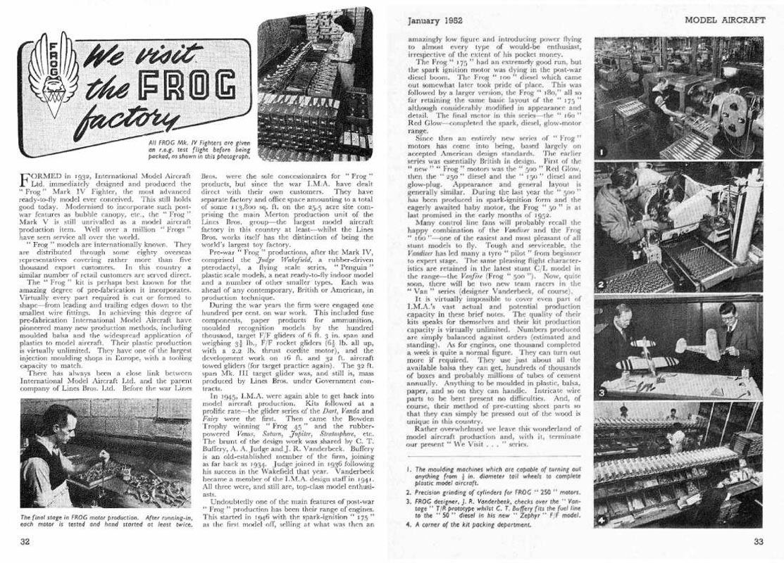After the initial publication of this article, I was delighted to hear from none other than Gordon Cornell, who worked for FROG manufacturers International Model Aircraft Ltd (IMA) from late 1957 through to late 1958. Gordon was kind enough to add a number of details which did much to inform my understanding of the FROG 500.