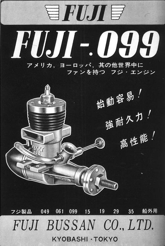Being fortunate enough to have direct or indirect access to a fairly representative selection of the various Fuji .099 models offered during the marque's first two decades of existence, we're probably in as good a position as anyone outside of Japan to make a reasonably well-informed attempt to document the development of these intriguing little engines during the "classic" era. In doing so, we will take full advantage of the attendant opportunity to document the general history of the company during that period.