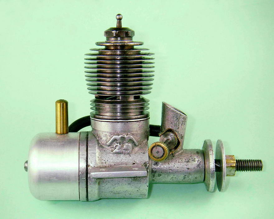 The 1949 date is consistent with the fact that we are presently unaware of any reported examples of an unquestionably original factory-made Fuji spark ignition engine, although later owner retro-conversions do exist—page 84 of Clanford's book illustrates just such an engine, which is incorrectly described as a 1955 Fuji 29 (it's actually a 1958 Fuji .099). It would thus appear almost certain that the line originated after the commencement of the glow-plug era in 1948. The 1949 date is also consistent with what we know from other sources about the chronological evolution of the Fuji range. Hence there appears to be no basis for challenging the date in the MECOA slogan unless or until someone conclusively proves it to be wrong!