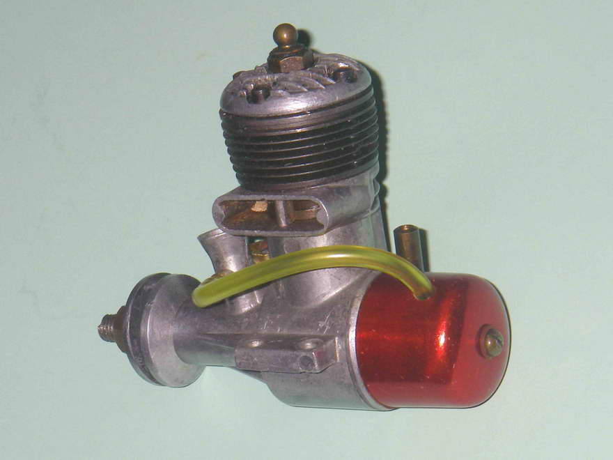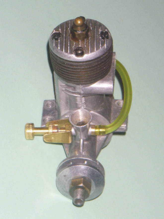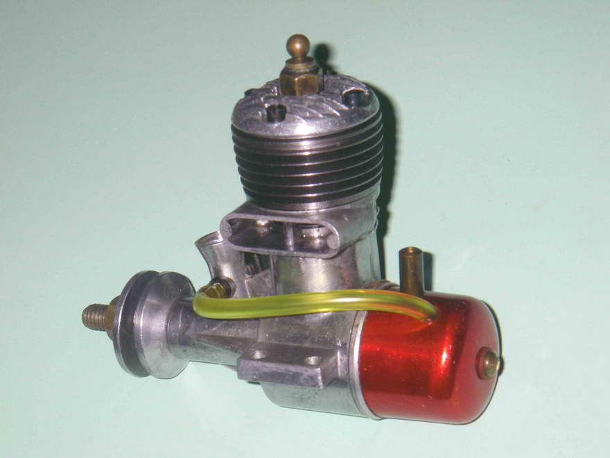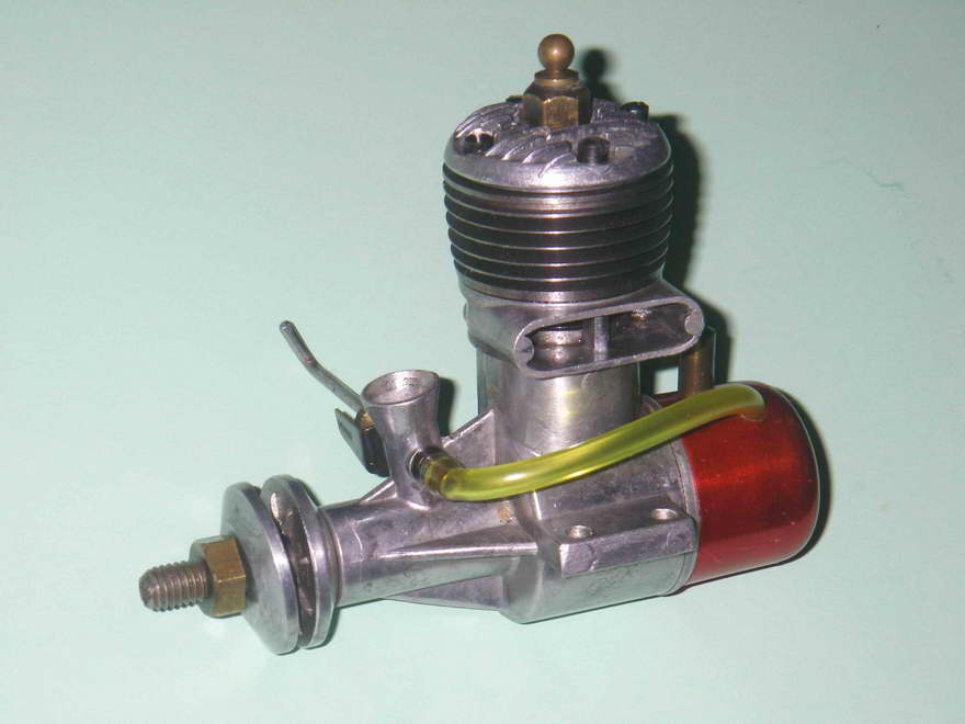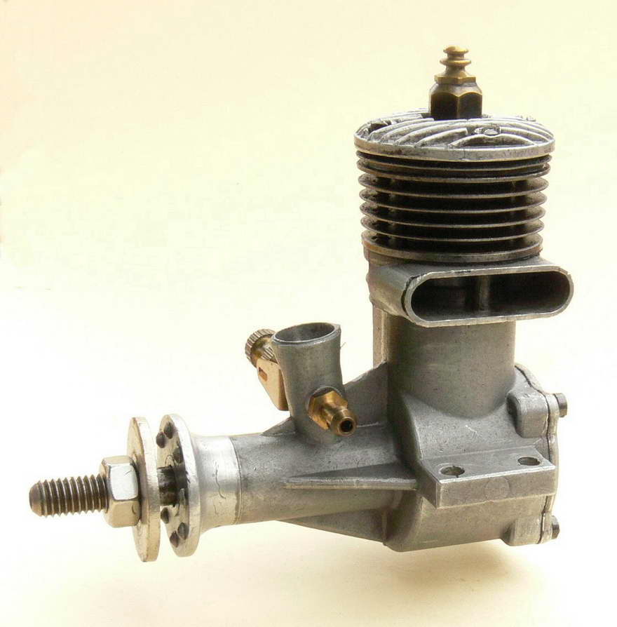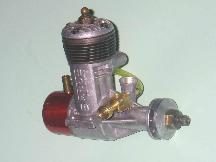 The cast iron cylinder of the Super 19 retained the modified form of the integral cooling fins which had been a feature of the previous (third) 19 model described above, and the cylinder head also appeared identical. The needle was however modified further to include a flexible extension, which was of course far less prone to crash damage. Peter Chinn's 1954 international glow engine survey (Model Aircraft May 1955) confirms that the bore and stroke remained unchanged at 16 mm apiece for a displacement of 3.22 cc (.196 cuin). Cited weight was 5.1 ounces, without a tank of course.