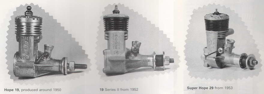The taking of this step provides a clear indication that the Hope engines were then selling fairly well in those markets in which they were being promoted at the time. My Japanese contacts inform me that the range was very popular in Japan for some years during the 1950's, and the on-going development of the various models during this period certainly supports this assessment. Clearly, demand had outstripped the ability of the factory to produce the engines and steps had to be taken to increase production. A change to the die-casting process was an obvious move in that direction. It would appear that at this stage the Hope enterprise was a growing concern!
