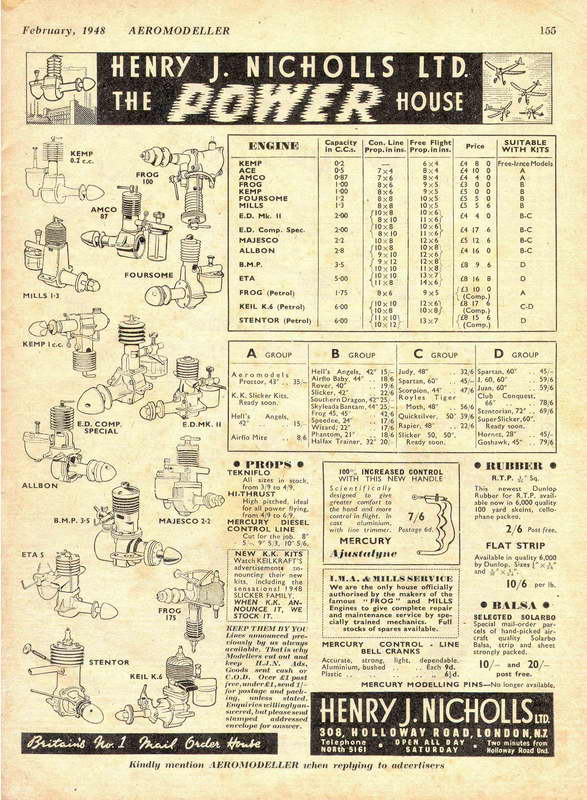 Another victim was Mercury Model Aircraft Supplies Ltd, who were unable to weather the storm and were wound up in 1953, although the assets and name remained "in the family" by being acquired by "H J Nicholls Wholesale Ltd". It's also possible that the North Downs Engineering Co, makers of the Nordec racing engines, also ceased model engine production in late 1950 at least partially as a result of this decision.