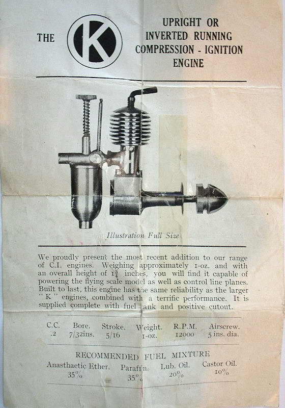 Despite this, the company was quite active in promoting its products, continuing to advertise in the British modelling media throughout this period. The K engines also received favorable coverage in widely-read books such as the second edition of Col. Bowden's "Diesel Model Engines". Furthermore, such tests as were published for a few of the K models were generally positive. Consequently the range continued to be well publicized, and to all appearances the company's marketing potential should have matched or exceed their production capacity.