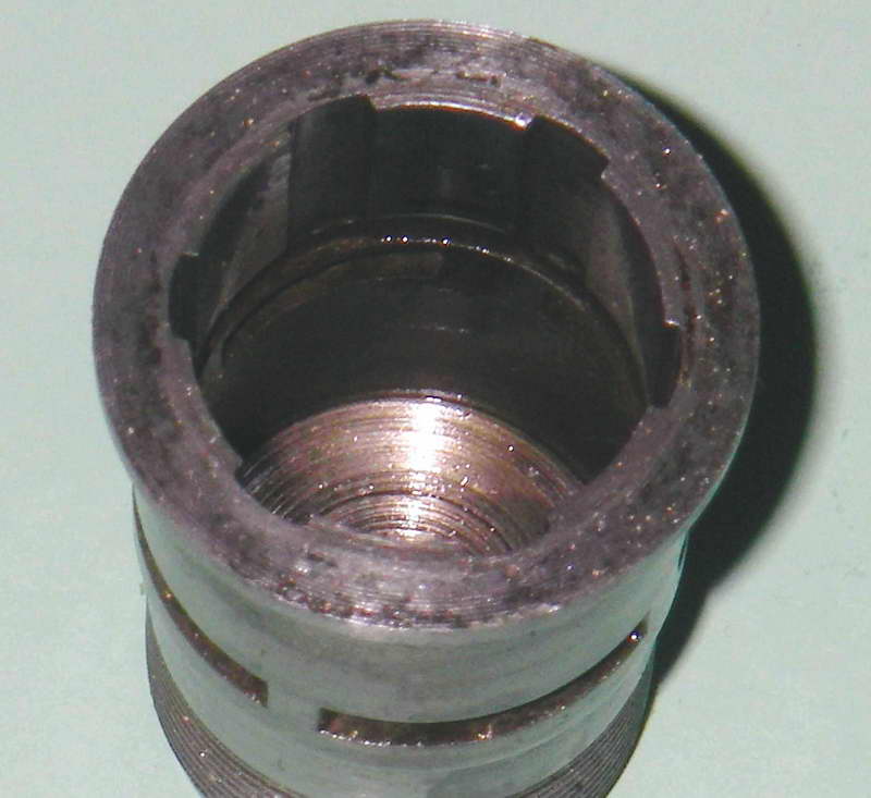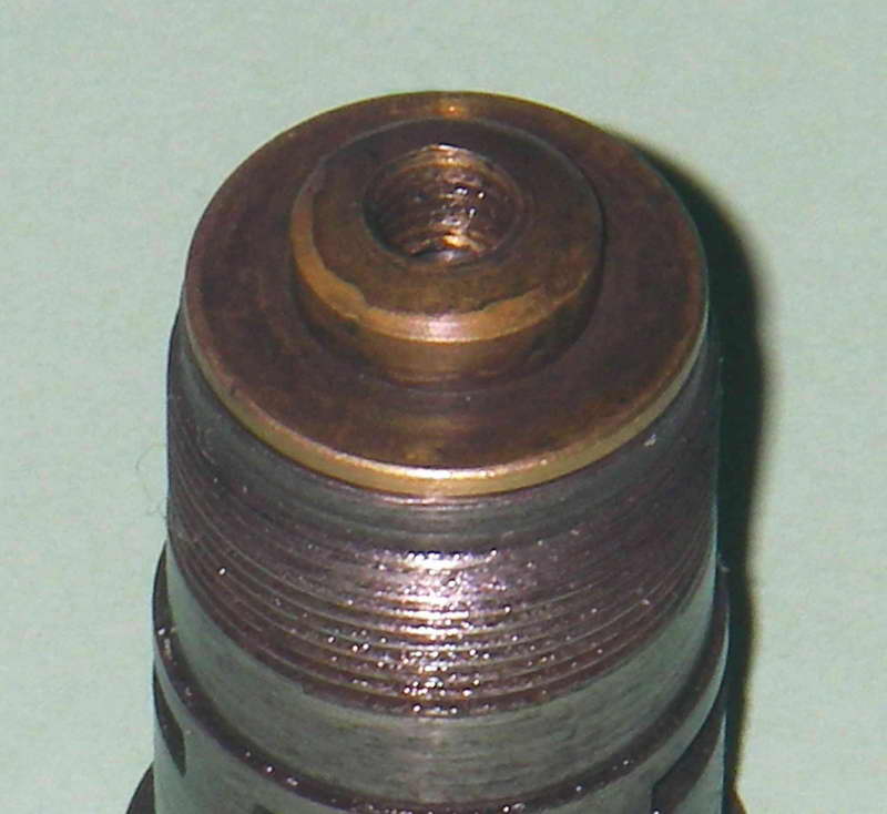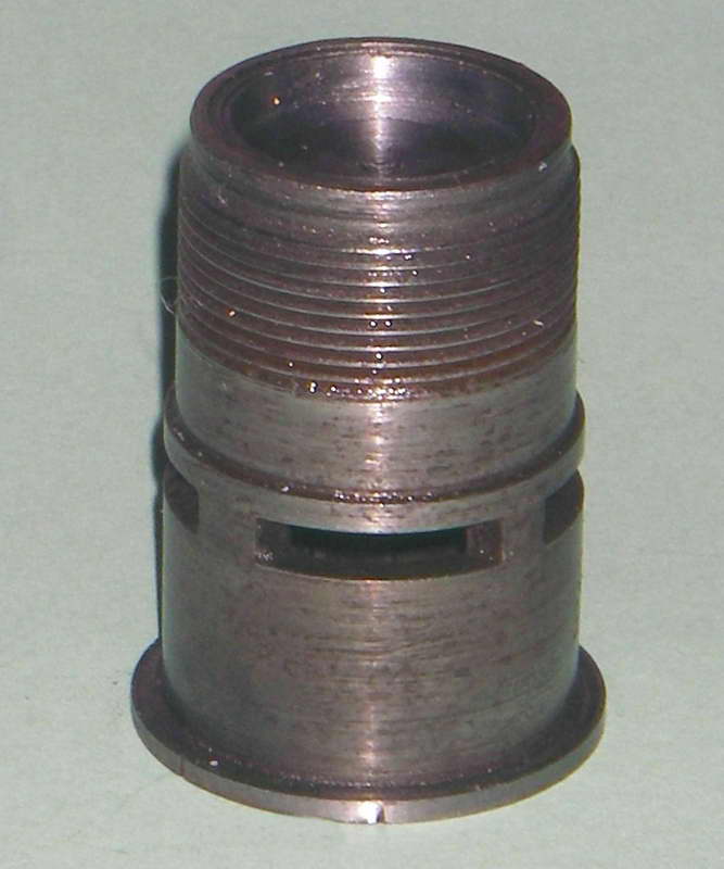 Unusually, there was no "spigot" length below this flange to locate the cylinder laterally on the crankcase. Instead, the cylinder was both secured and laterally located by an internally-threaded ring which bore on the top of the cylinder flange and screwed onto an externally threaded portion of the upper crankcase. This threaded ring quickly became known colloquially as the "dog collar", a highly descriptive term which has stuck to this day! The dog collar on the Mk I Vulture was made of brass and took the form of a simple knurled ring with an internal shoulder above the threaded portion. A gasket between the cylinder base flange and the upper crankcase ensured a good seal.