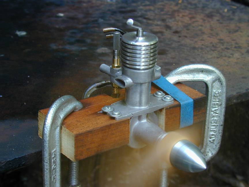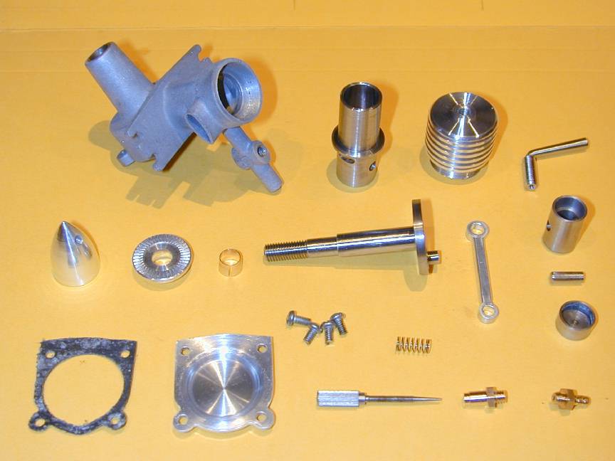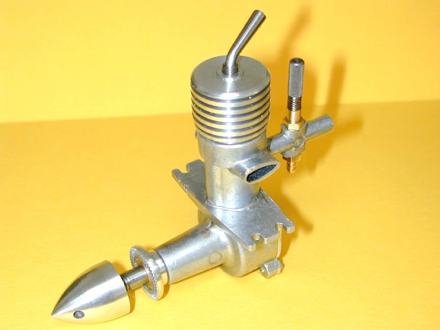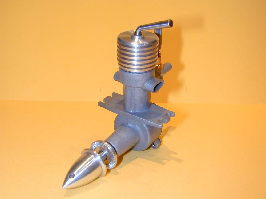 Putting the cart before the horse, this is the 01 engine. Main differences are the reduced capacity resulting from smaller throw, and the reduced base diameter of the spinner to produce a more needle nosed, "deadly" look approximating that of the original engine photograph at the head of this page.