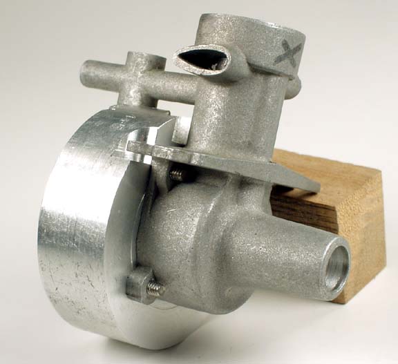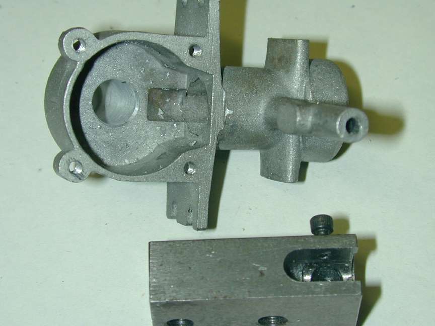 This AHC was built as the jigs and fixtures were being made. It uses a reject case (notice the ding in the front of the right hand mounting lug). I call it the 61-00 engine. "00" because it's the prototype and I can't make more than about 90 engines (limited by case availability); "61" because that's the ISD code for Australia where this AHC was made. When this shot was taken, 61-00 lacked pistons and rod. If you look closely, you can just see the "00" in the ejector pin mark on the needle boss.