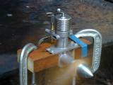The prototype ran for the first time on Anzac Day, April 25, 2001. It started easily and handles well. Initial start used a 12" diameter, 7-1/2" pitch "Deci Ban" wood prop because I'd made the "pinch" in the piston/cylinder fit quite tight, so I wanted a lot of flywheel for first start. In normal use, this is far too much prop for an engine of just under 2cc capacity. However, on this prop, at its first start, it ran a full 10cc tank dry in about 4:30 minutes—very, very economical. Best RPM on this prop was 3500. Next it spun a 9-6 wood at 5500 RPM and an 8-4 plastic at 6500. As an experiment, I did not machine out the crankshaft counter balances in the web for the first tests (ok, I admit it, I forgot). During this test session, the engine was given about 30 minutes of running. At the end, a 9-6 APC prop was giving a consistent 6000 RPM.