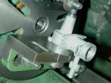 The inlet drilling jig, rotated 90 degrees is also used to face, drill and tap the spray bar boss (operation not shown here). First, the drill guide hole is used to position the milling vice. This assures the spray bar will be accurately centered and at right angles to the venturi bore. Facing at the same setting provides good seats to the two piece needle support insert and fuel jet.