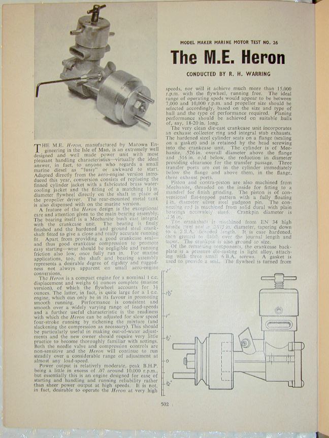 | [3] | Warring, RH: Model Maker Marine Motor Test No. 26: The M.E. Heron, Model Maker, Volume 10, Number 118, October 1960, Model Aeronautical Press Ltd, p502. |