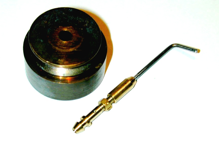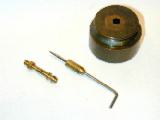 The making of a replacement needle valve and spray-bar was covered in detail as the Tech-Tip for November 2004. This resulted in a bright and shiny (shite and briney?) replacement which just looked plain *wrong*, and was likely to go on looking wrong for the next four or five years. So with nothing but the purest of intentions, the collective wisdom of the Motor Boys was canvassed to see if an accelerated way of aging of brass was known. Although it's perhaps difficult to see in the before (needle screwed to spraybar, left) and after (needle and spraybar separate, right) shots here, the results are actually quite acceptable and the NVA has just enough "age" patina on it to not look totally out of place any more.