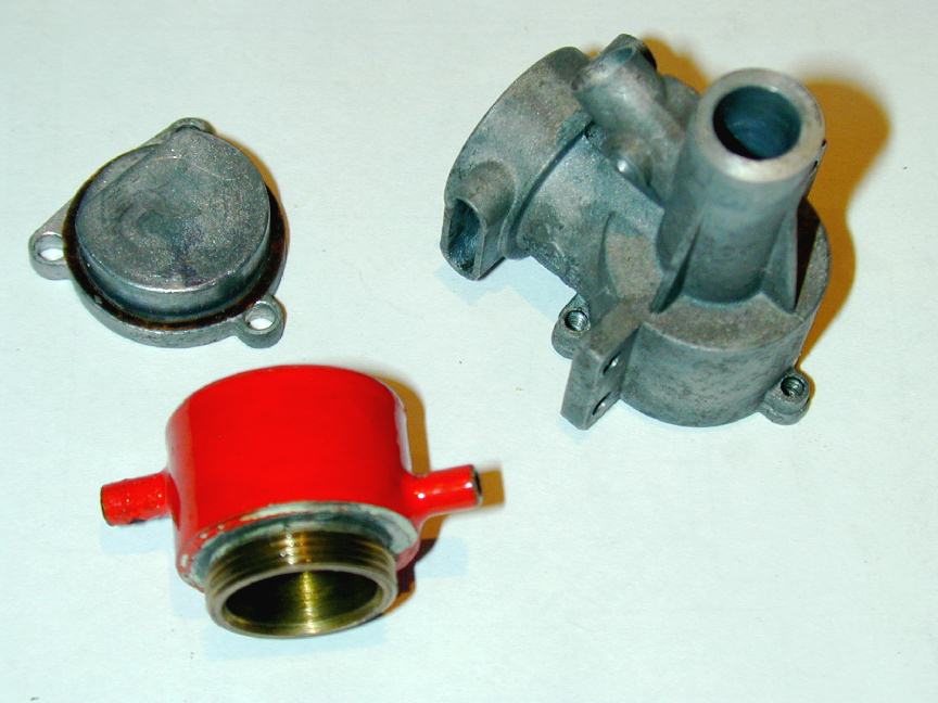 As received, the engine was missing the NVA (naturally!), and was fitted with a most unusual compression screw. A bit of gunge, some spot corrosion on the aluminium case, the lack of compression (via the cracked liner), and a slightly bent conrod testify to its past life as a marine thumper--one can inflict far more damage with two hands, a flywheel and a pull-cord than you can with a prop and a finger. The cap-head screw poking out of the cylinder head should have been 2BA, but turned out to be a 10-32. This substitution one can get away with, almost. The major diameter for a 10-32 is 0.190" and the pitch, obviously, is 0.031" (the inverse of 32). A 2BA screw, being metric, would be 4.7 mm, or 0.185" major diameter, and 0.029" pitch (31.4 TPI). So with a little persuasion, the two can be mated, though the softer one will never be the same afterwards. In this case the softer one was the head, so the replacement comp screw was made with the 2BA die opened up as far as possible in a vain attempt to achieve a good fit.