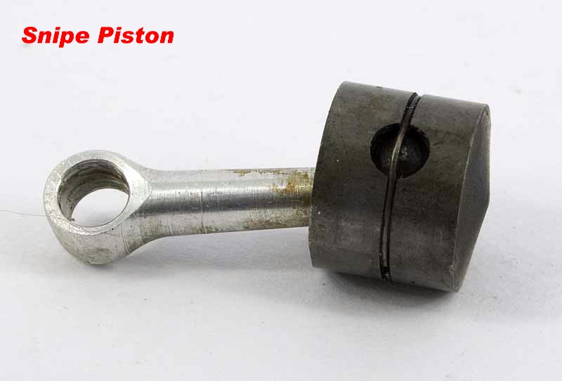 The cylinder liner, as stated in all three reviews, is also machined from "Meehanite". The combination of cast-iron running in cast-iron can be quite long wearing, but a cast iron cylinder is rather delicate. If you examine the top of the cylinder in the photo above, you will easily spot the jagged crack that has robbed this engine of most of its compression, and all of its running ability. It is worth noting that the Snipe was significantly different internally, with a hardened steel cylinder, fluted internally with three milled transfer passages that overlapped the exhaust ports significantly [5].